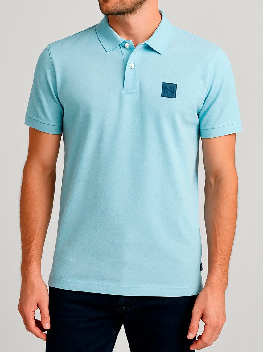 CAMISETA POLO AZUL CIELO LOGO PETROLEO HOMBRE